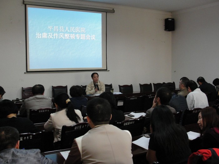 为进一步贯彻落实县委、政府治庸工作的会议精神,切实加强卫生队伍作风整顿,解决少数干部职工中存在的“庸、懒、散”问题,加强全院干部职工创先争优、开拓进取意识,有力有序地进一步推进全院治庸工作的开展。11月22日下午,我院召开了治庸工作进一步深入推进的专题会议。全院中层干部、党员、行政科室参加了会议。