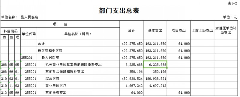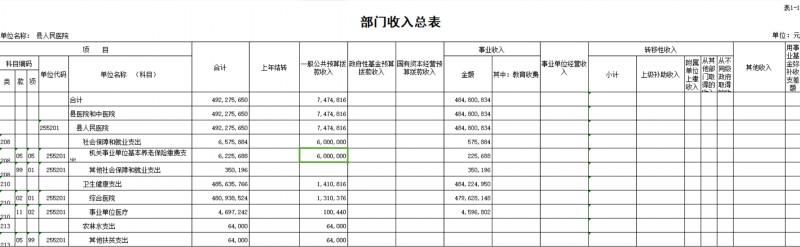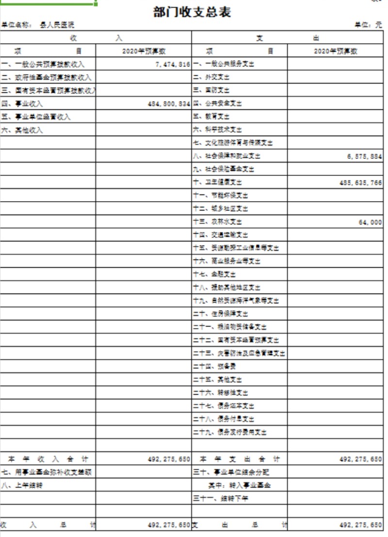县医院2020年预算公开表.xls