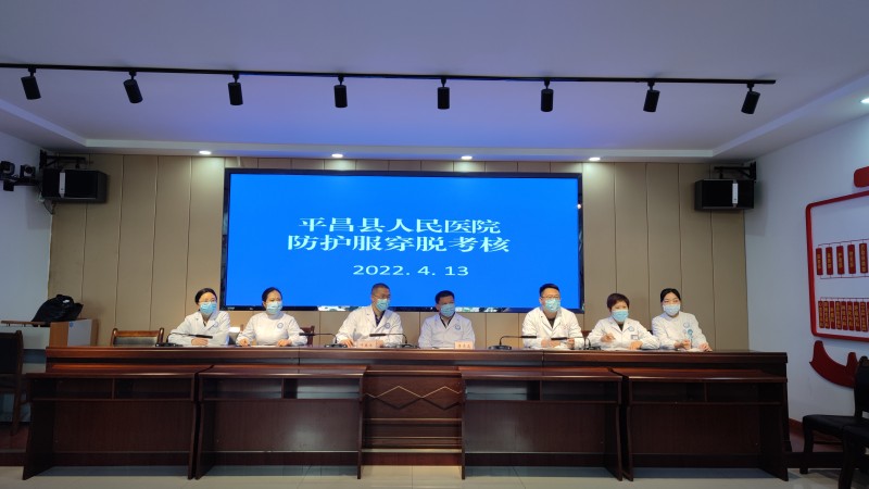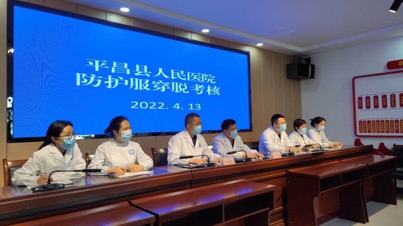 为加强新冠肺炎疫情常态化防控工作,落细落实各项防控措施,4月13日,平昌县人民医院在行政办公区3楼会议室分时段、分小组对全院医务人员防护服穿脱流程进行抽查考核。