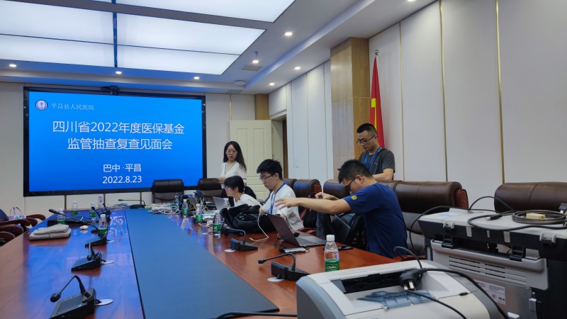 8月23日,四川省2022年度医保基金监管抽查复查见面会在我院行政办公区2楼会议室召开,全体检查组成员,市、县医保局领导,院领导及相关部门负责人参加会议。会议由县医保局副局长王兵主持。