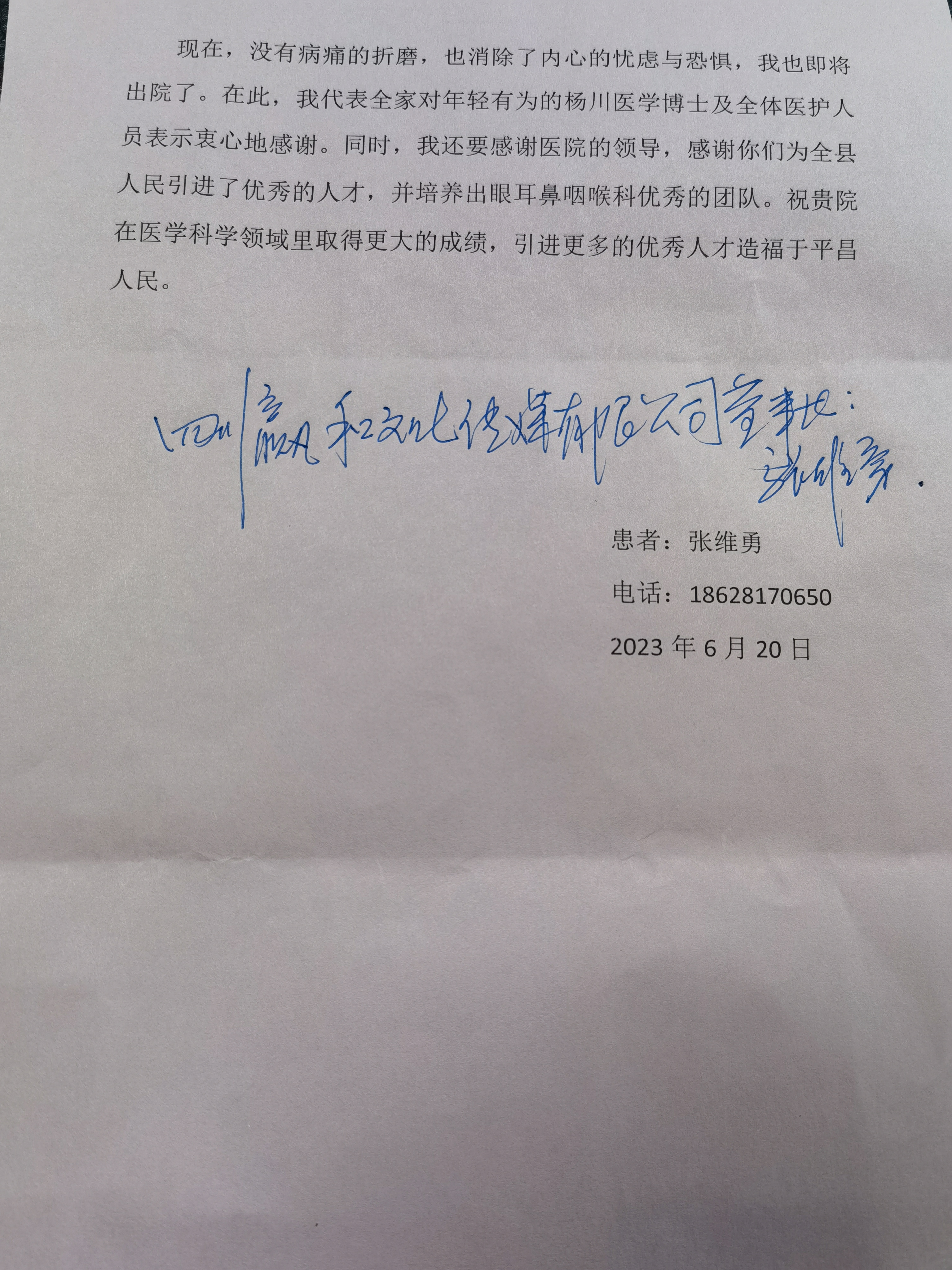 张维勇感谢信