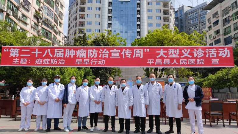 2022年4月19日至21日是第28个全国肿瘤防治宣传周,为提高全社会癌症防控意识,营造全民防癌抗癌的良好氛围,4月19日,平昌县人民医院在天使广场开展以“癌症防治,早早行动”为主题的大型义诊活动。义诊现场,由肿瘤科、呼吸与危重症医学科、消化内科(胃镜室)、血液风湿科、普外/胸外科、妇科等学科组成的专家团队以饱满的工作热情为前来就诊、咨询的群众耐心细致地诊治病情,开展肿瘤预防与筛查咨询,癌症风险评估;护理人员忙着为现场群众免费测量血压、血糖,进行健康宣教,指导群众参与问卷调查;预防保健科工作人员发放科普材料、介绍肿
